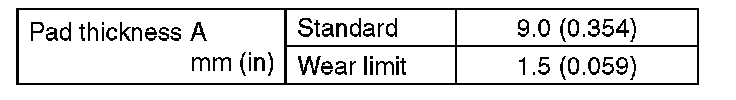 If the pad is worn to the limit, the end of wear indicator contacts disc rotor, and a squeaking sound is heard as the wheel rotates. If the sound is heard, replace the pad.