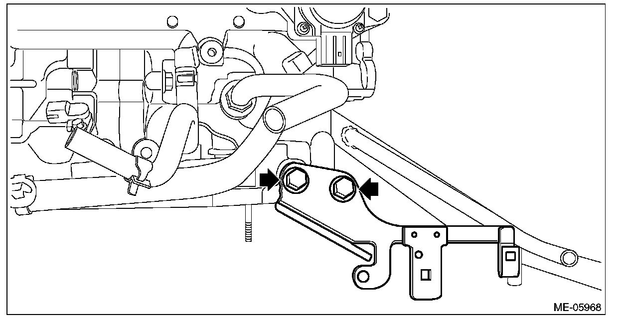 23) Install the A/C compressor bracket bolts and the power steering pump bracket bolts at the locations shown in the figure.