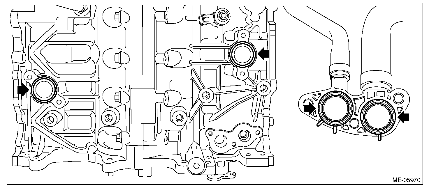 20) Remove the thermostat cover from oil pan upper, and then remove the thermostat.