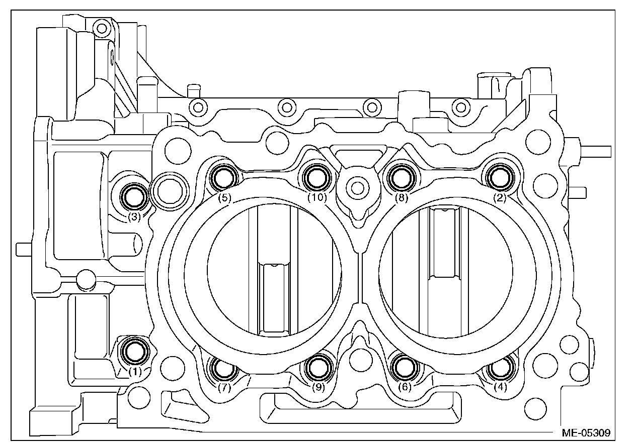 (2) Loosen the cylinder block mounting bolts in numerical order as shown in the figure, and separate the cylinder block RH and LH.