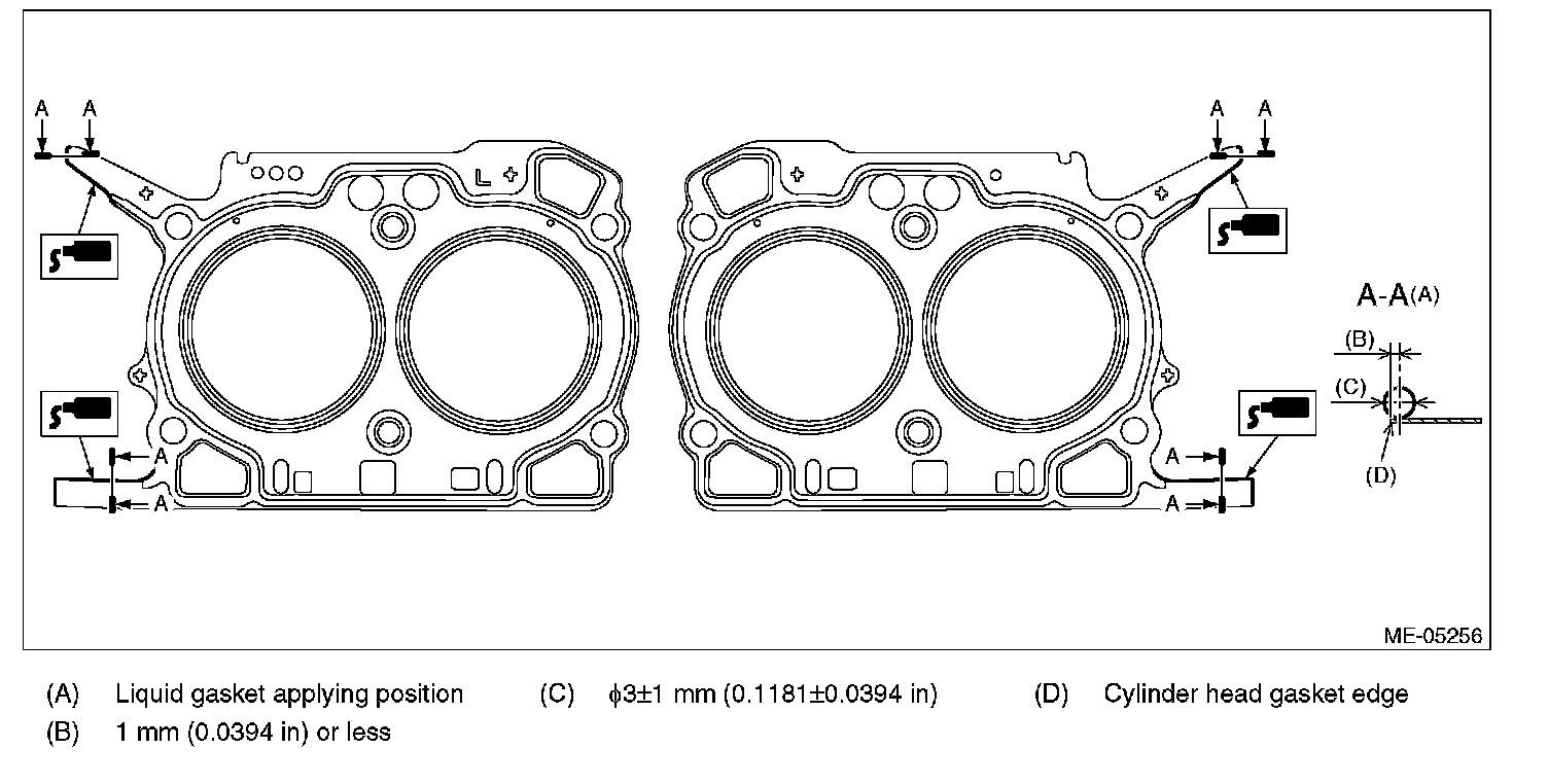 2) Apply liquid gasket to both sides of the cylinder head gasket LH as shown in the figure.
