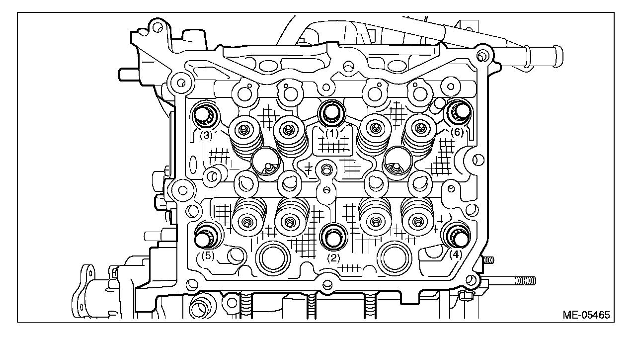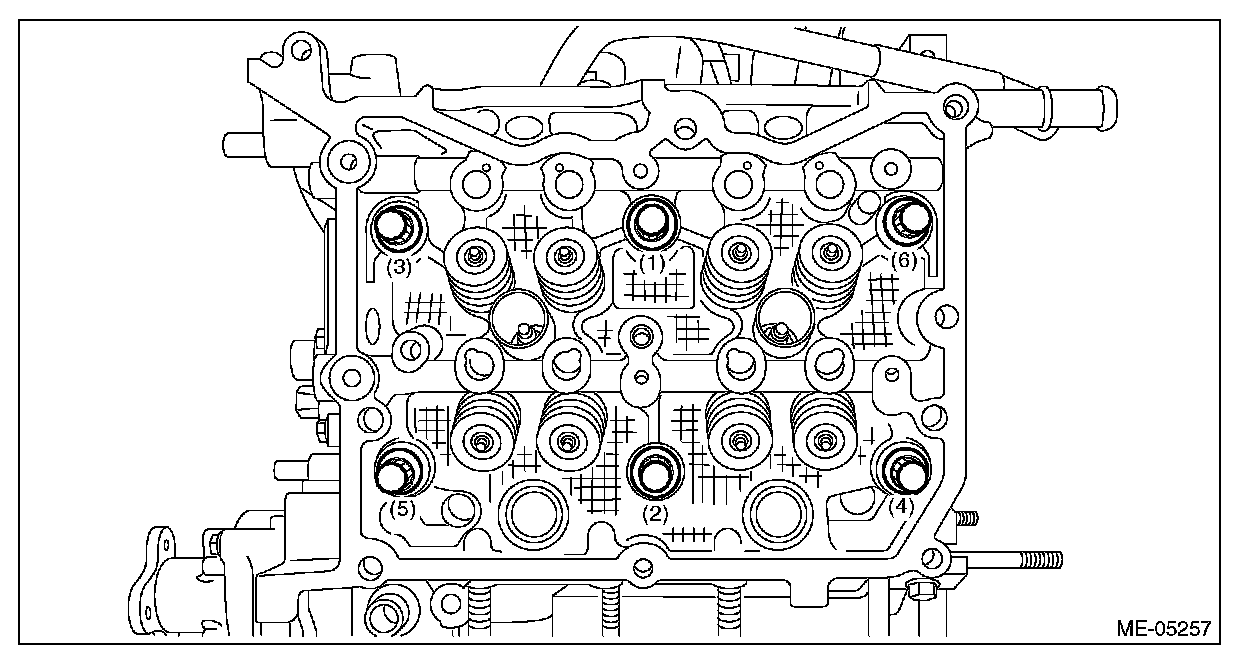 (1) Clean the cylinder head bolt threads and apply sufficient engine oil to the washer and cylinder head bolts threads.
