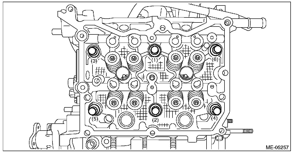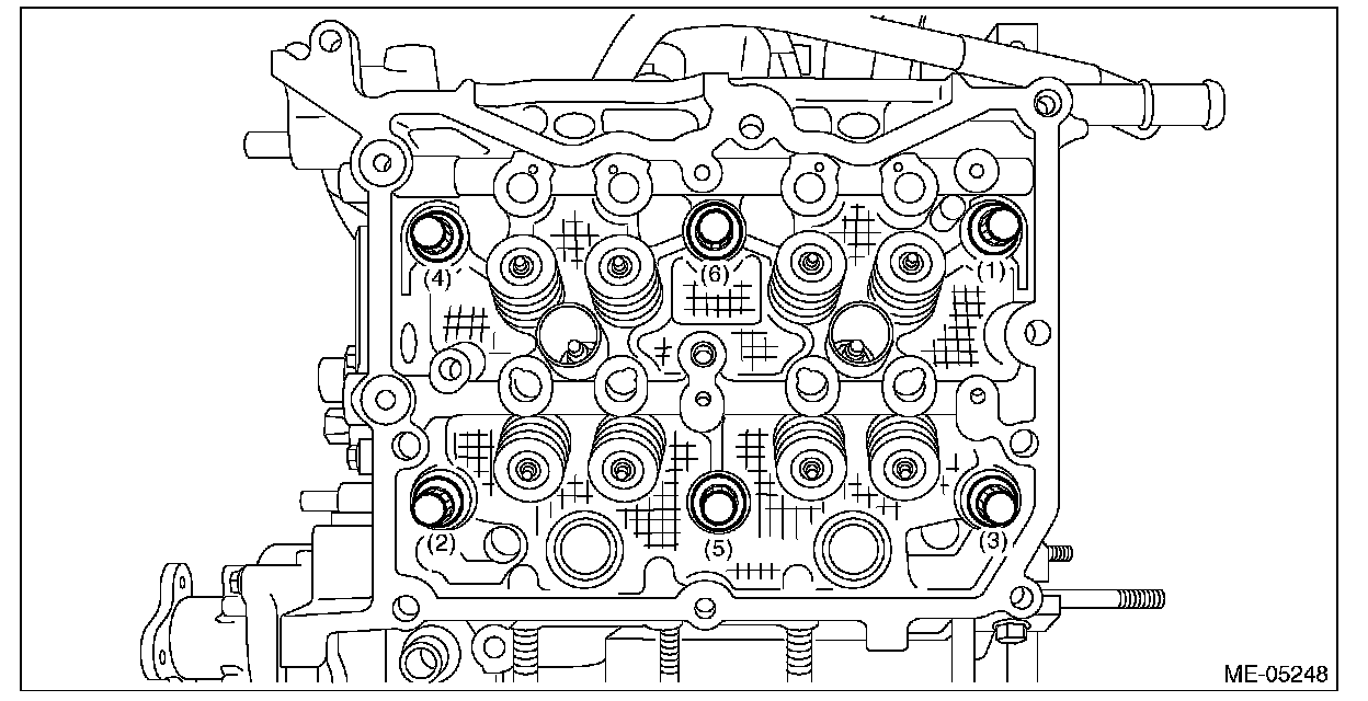 (3) Tighten all cylinder head bolts further with a torque of 100 Nm (10.2 kgf-m, 73.8 ft-lb) in numerical order as shown in the figure.