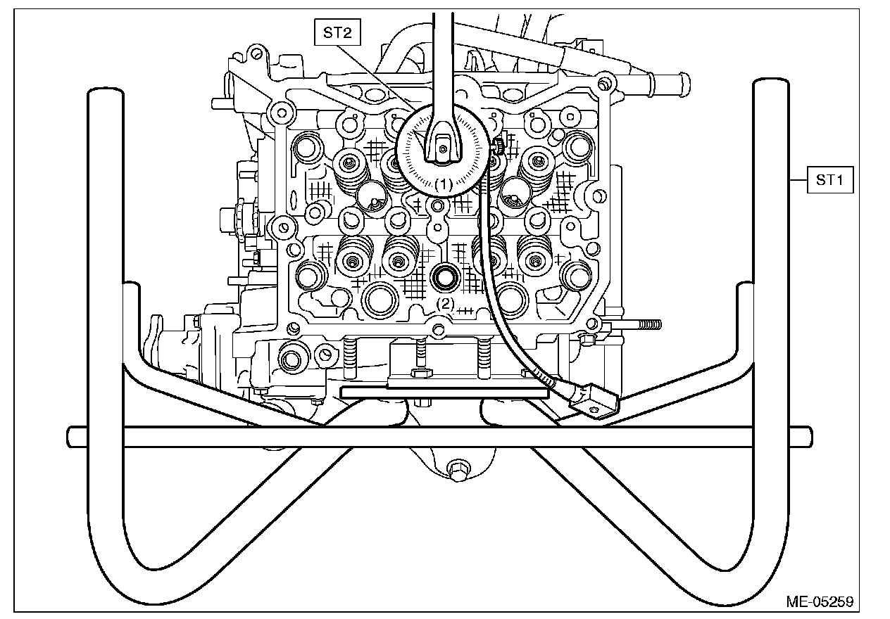 (7) Using ST2, tighten the cylinder head bolts (2 places) with specified angle in numerical order as shown in the figure.