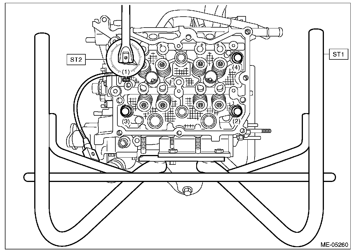 (8) Using ST2, tighten the cylinder head bolts (4 places) with specified angle in numerical order as shown in the figure.