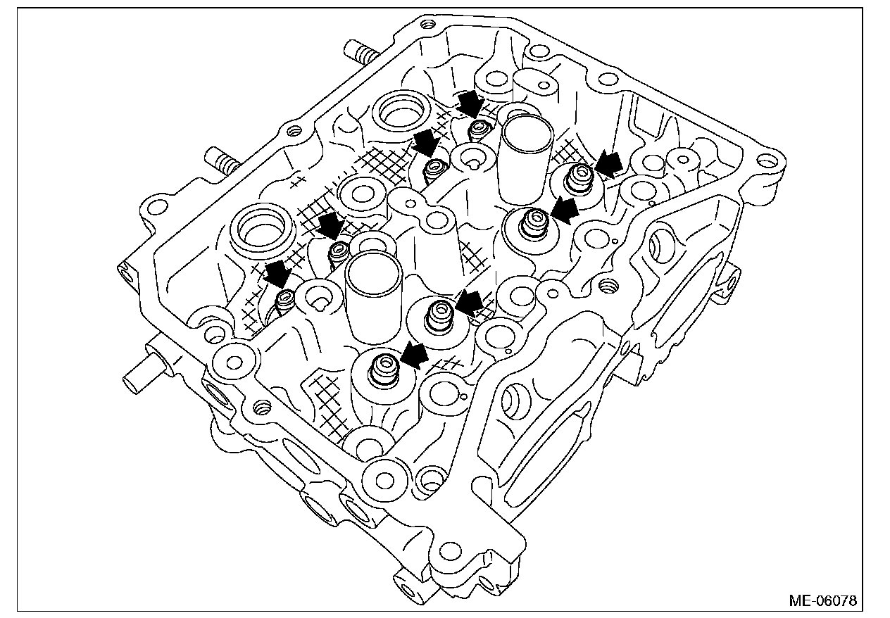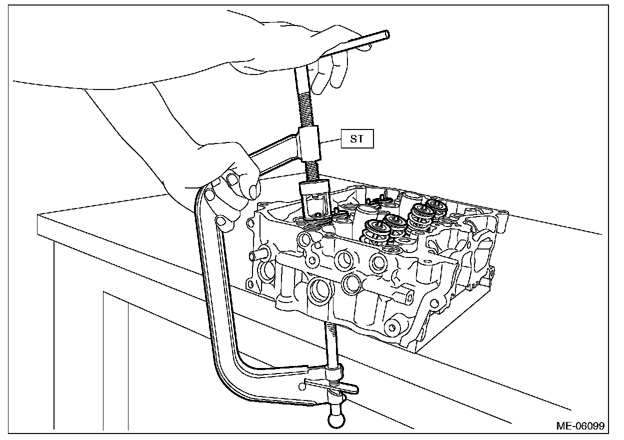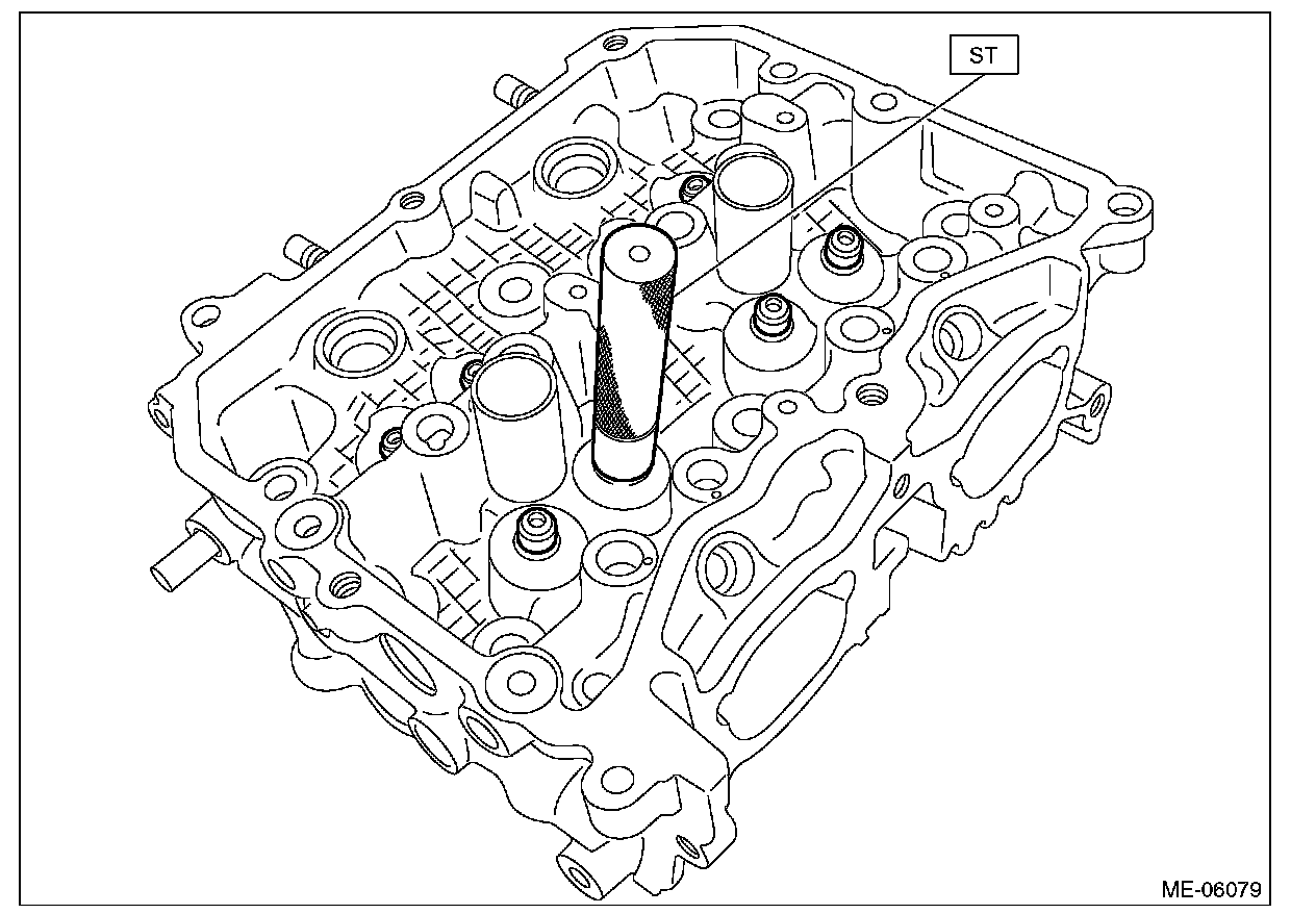 ^ When installing the valve oil seal, press the ST with hands to install it and never drive the ST with a plastic hammer, otherwise the valve oil seal can be damaged.