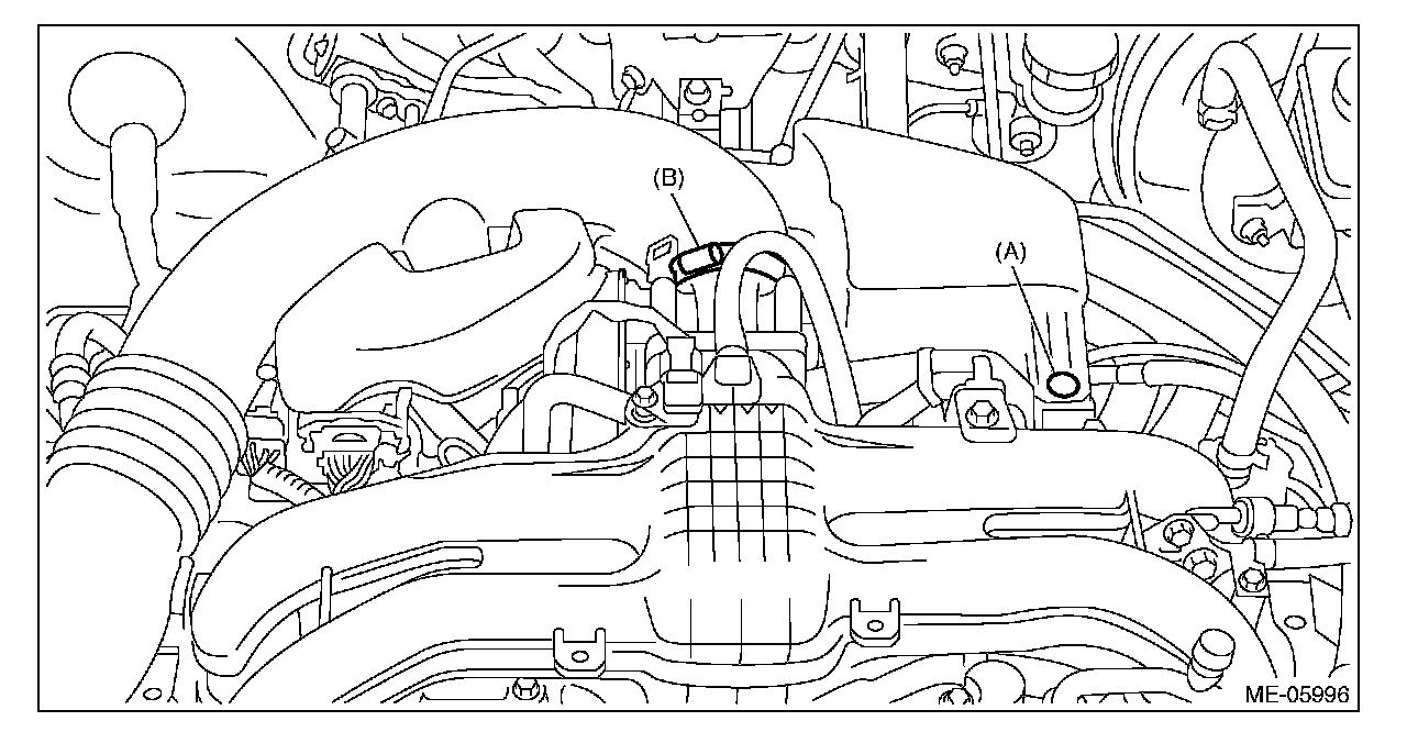 (2) Remove the clip (A) from the air intake boot, and loosen the clamp (B) securing the air intake boot to the throttle body.