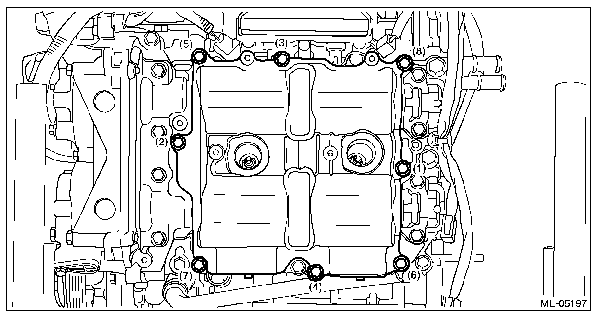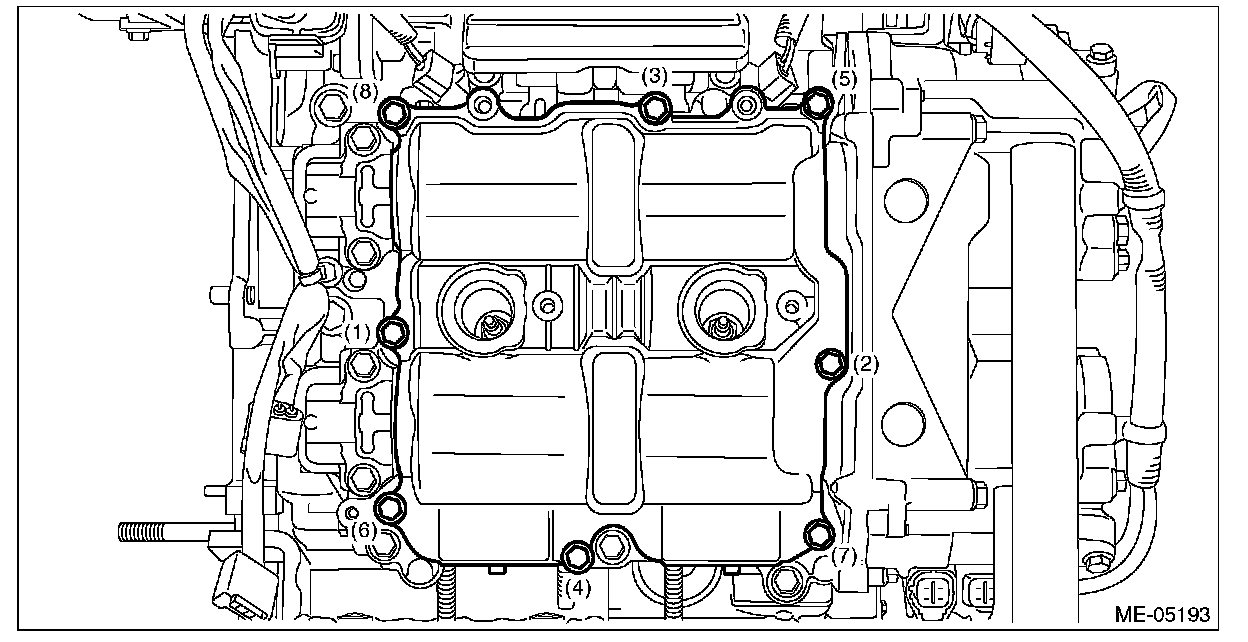 4) Set the rocker cover RH, and tighten the bolts in numerical order as shown in the figure.