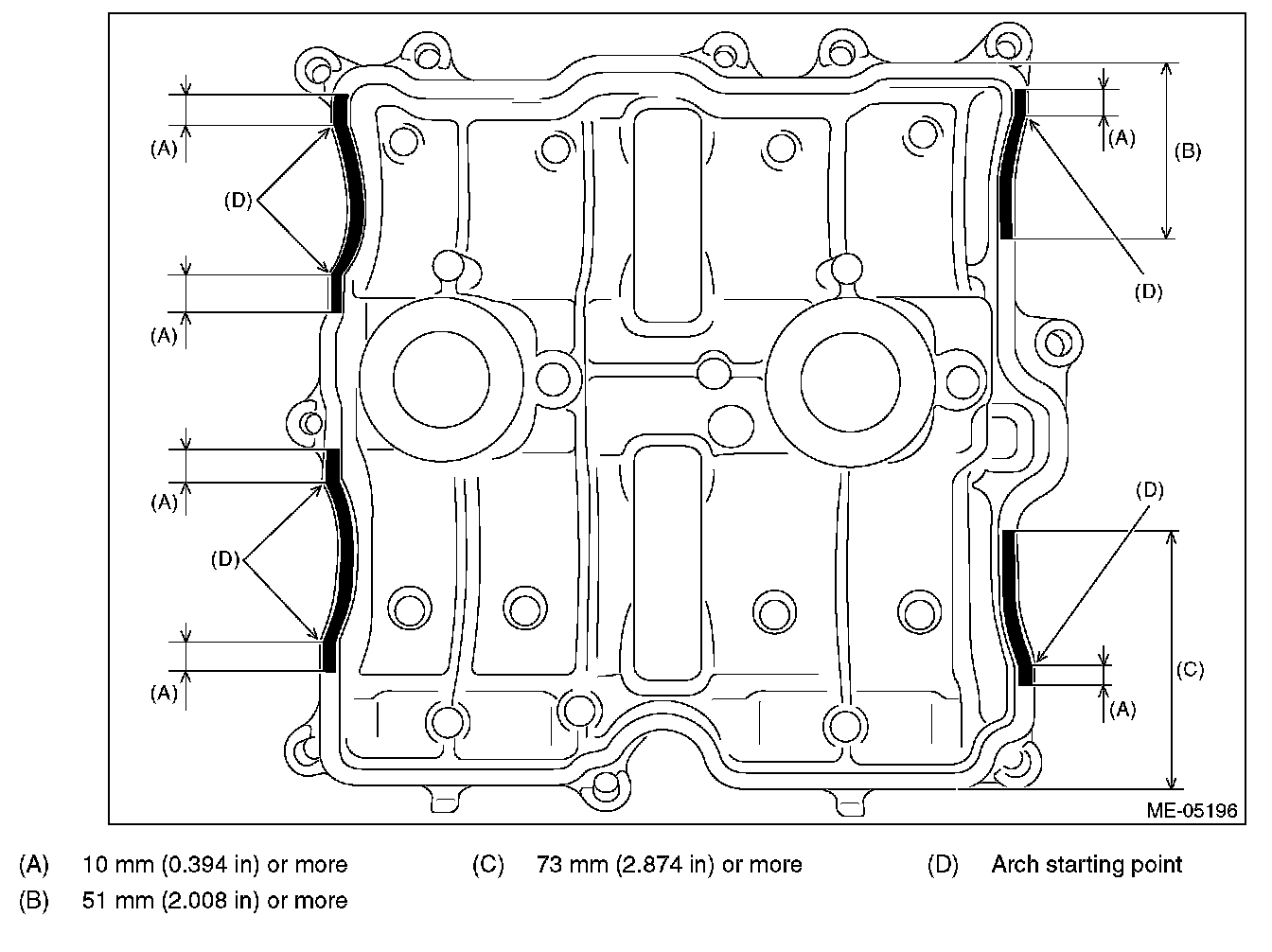 3) Apply liquid gasket to the mating surface of rocker cover RH as shown in the figure.