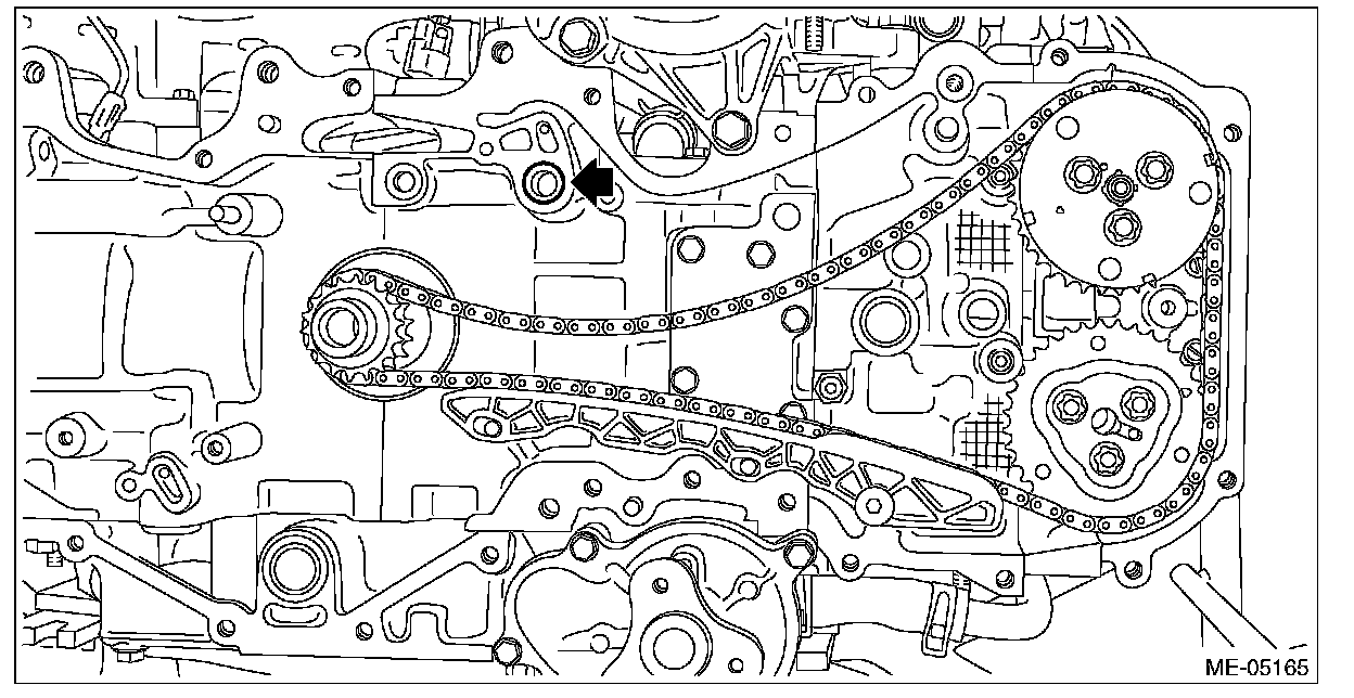 5) Remove the chain guide RH, and remove the timing chain RH (A).