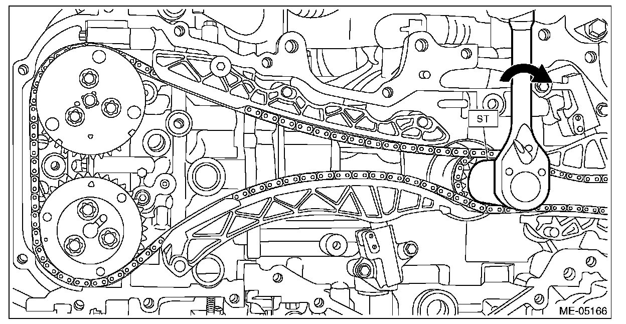 10) Using the ST, turn the crankshaft clockwise, and make sure that there are no abnormal conditions.