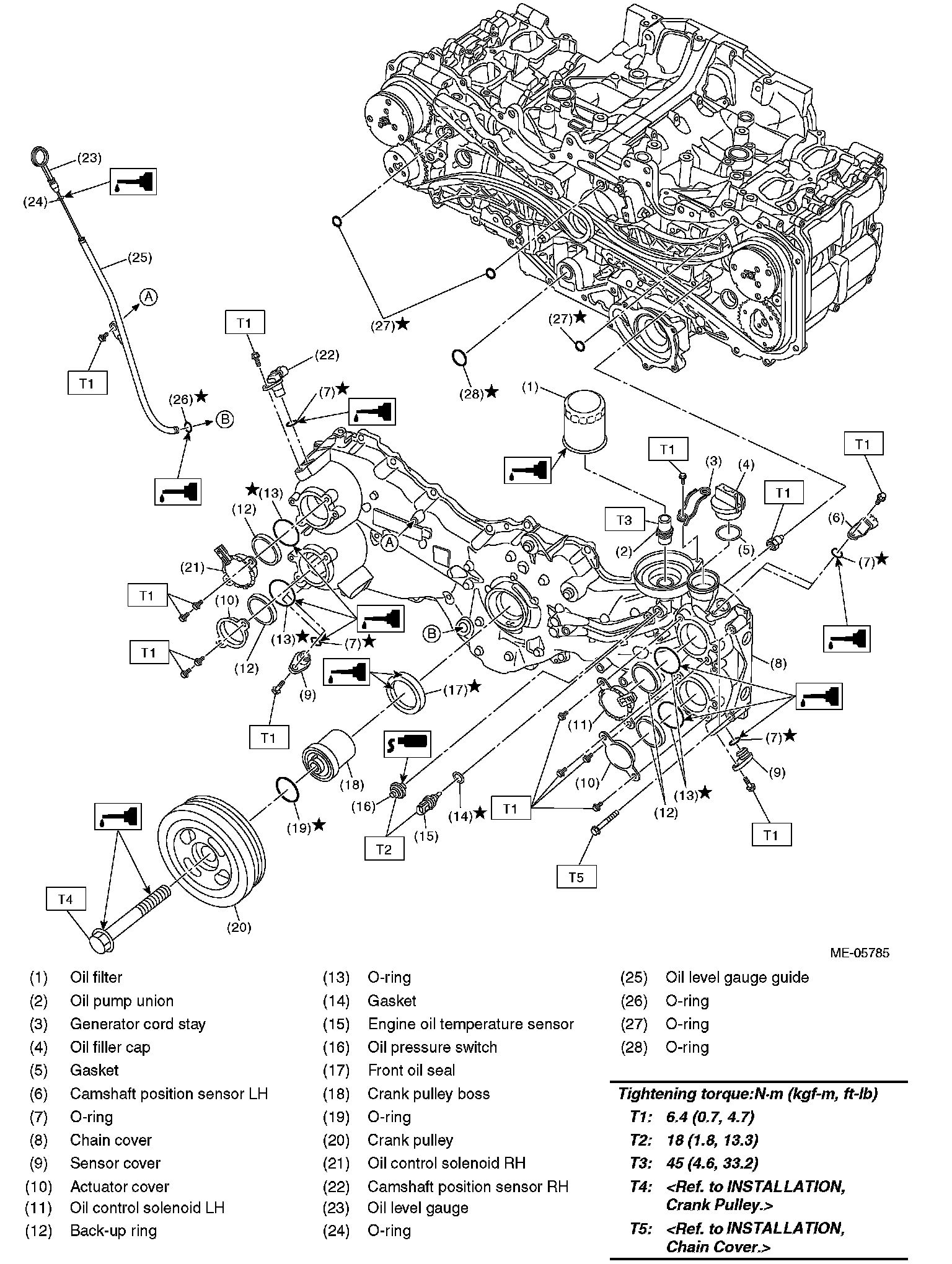 T2: 25 Nm (2.5 kgf-m, 18.4 ft-lb)