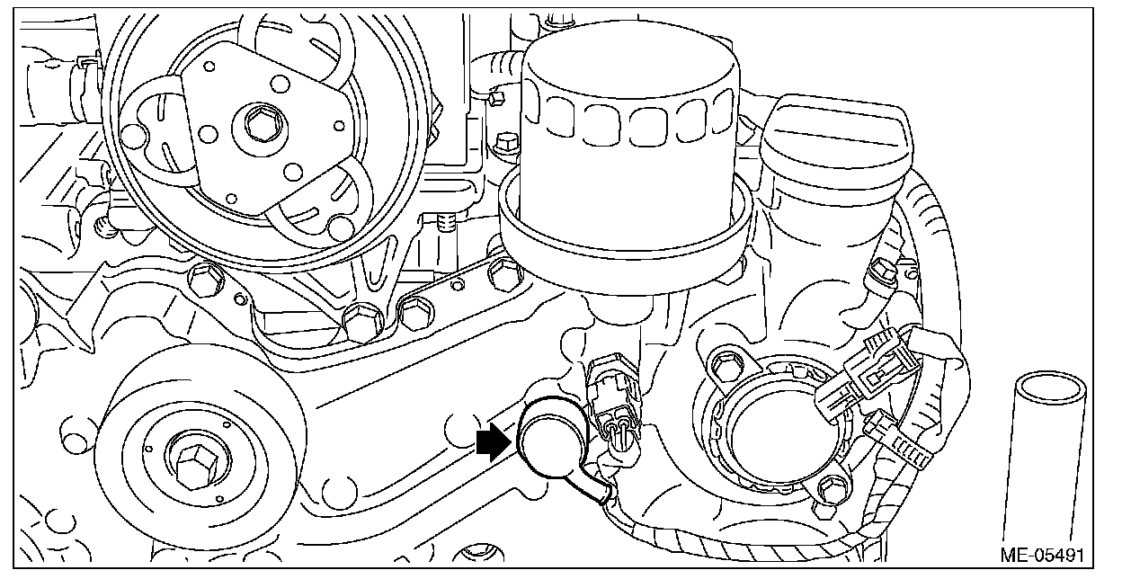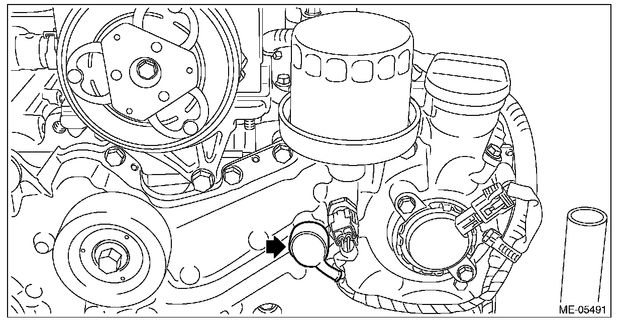 The oil pressure switch harness must be positioned toward the left lower side of the vehicle within the range of 90°.