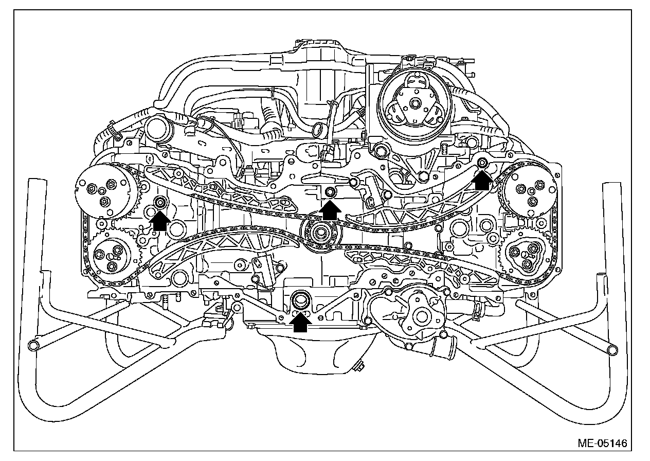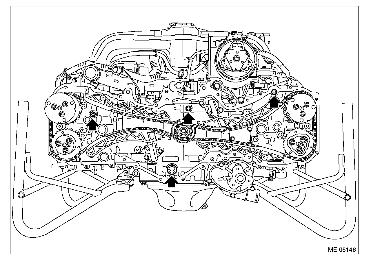 1) Install the O-rings to cylinder head RH, cylinder head LH, cylinder block LH and oil pan upper.