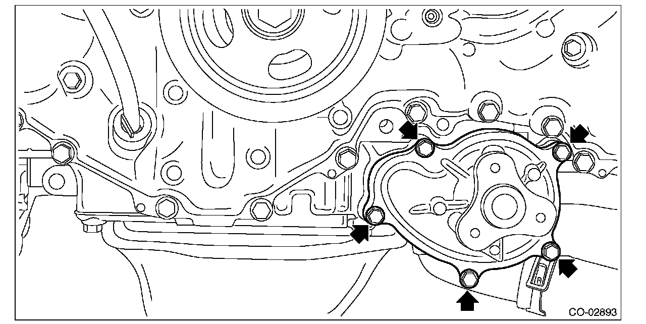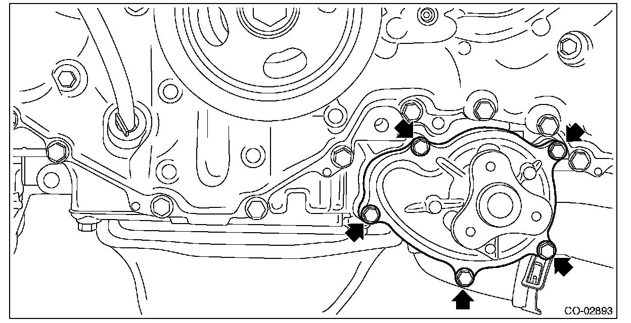 4) Remove the water pump from the oil pan upper.