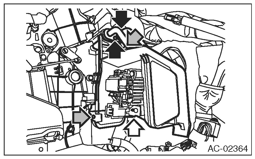 CAUTION: Seal the disconnected hose and pipe with a plug or vinyl tape to prevent foreign matter from entering.