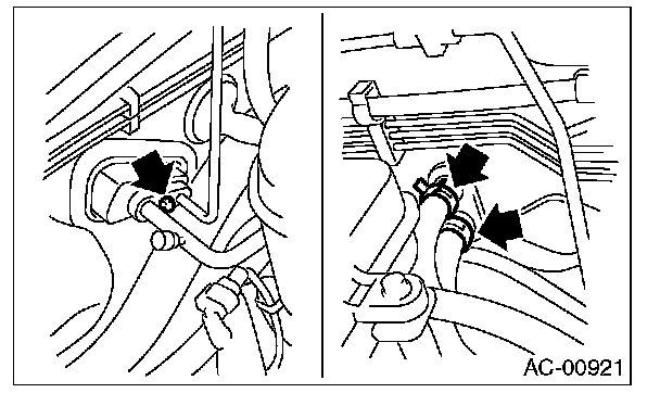 CAUTION: Seal the disconnected hose and pipe with a plug or vinyl tape to prevent foreign matter from entering.