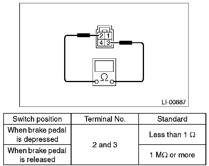 2. Replace the stop light switch if the inspection result is not within the standard value.