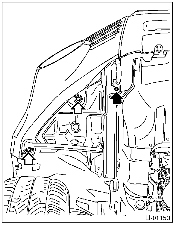 3. Remove the screw and clips, and turn over the mud guard.