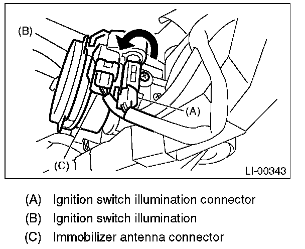 8. Turn the ignition switch illumination connector to the left and remove it.