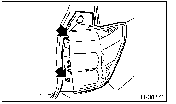 2. Remove the bolts, and then detach the rear combination light by pulling it to the rear side of vehicle.