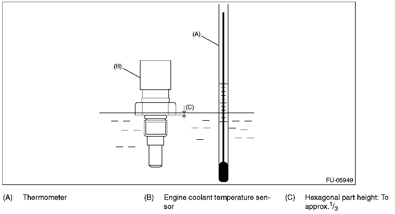 2. Immerse the engine coolant temperature sensor and a thermometer in water.
