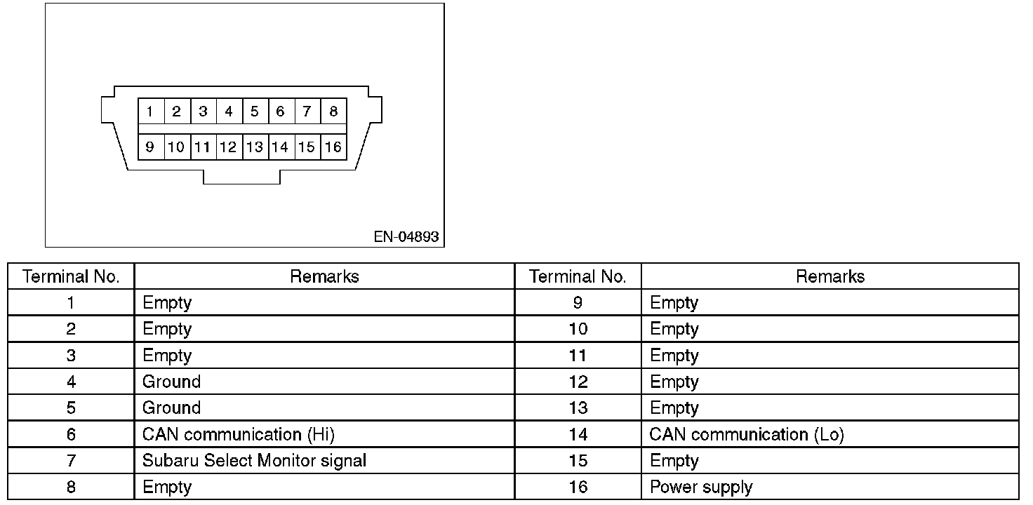 CAUTION: Do not connect any scan tools other than Subaru Select Monitor or general scan tool because the circuit for Subaru Select Monitor may be damaged.