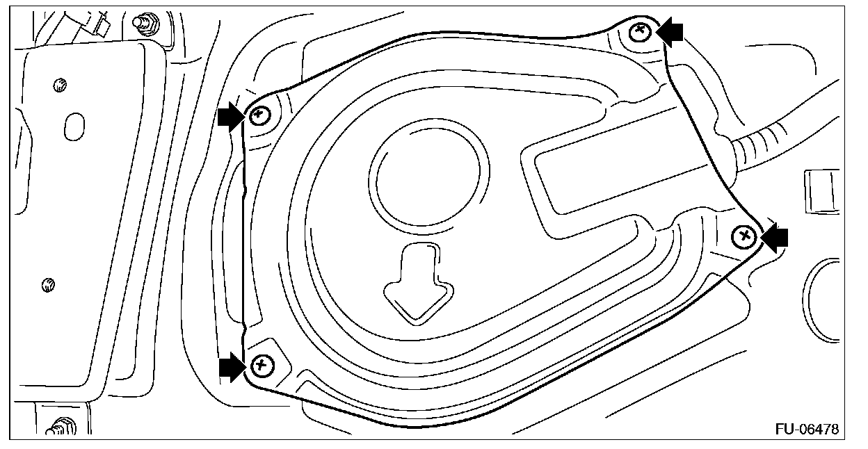 9. Remove the bolts and nuts which hold fuel sub level sensor protector and fuel sub level sensor upper plate to the fuel tank.