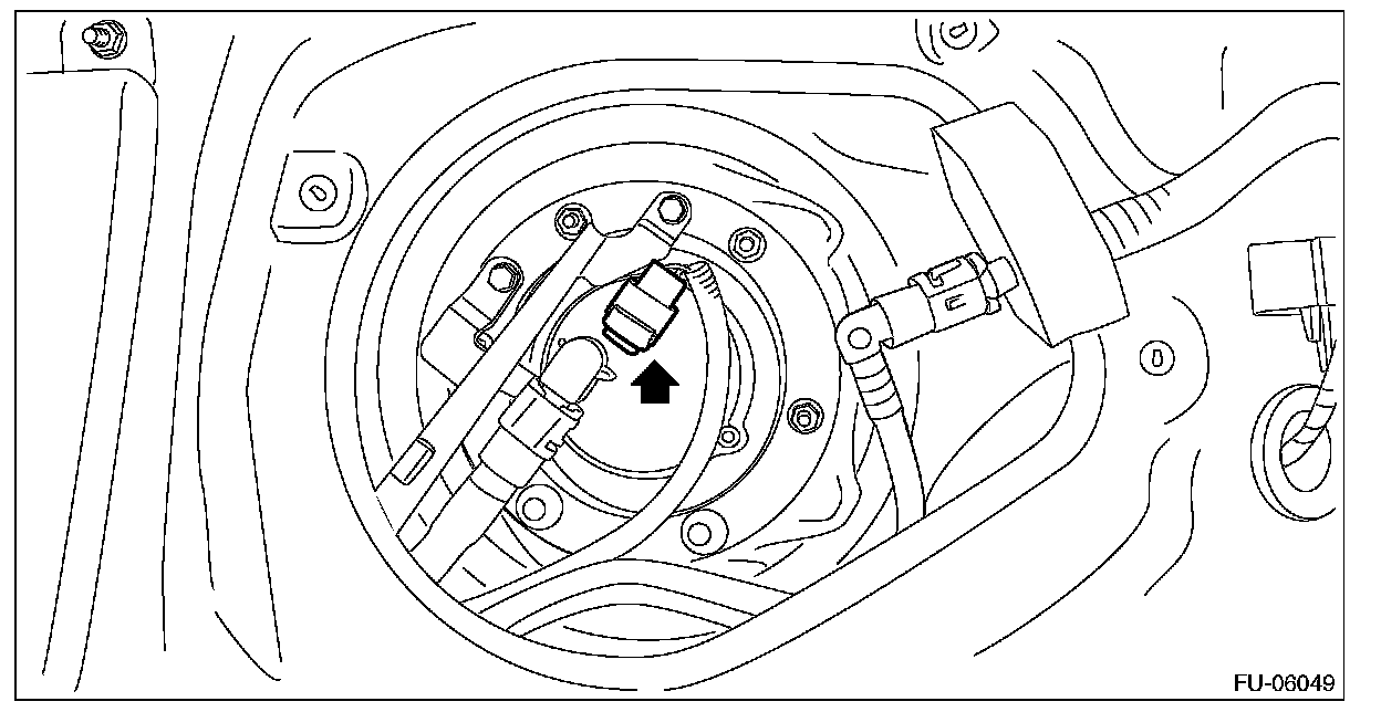 - Align protrusion (B) of the fuel sub level sensor to the cutout in the fuel sub level sensor upper plate.