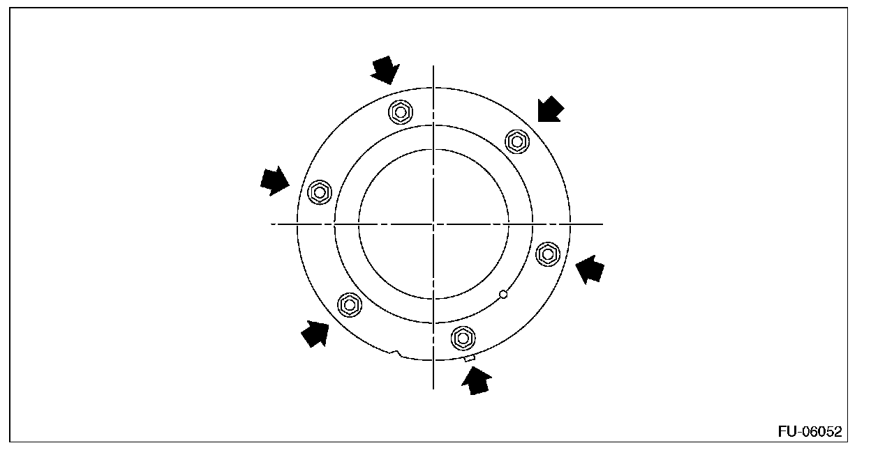 - Tighten the nuts and bolts to the specified torque in the order as shown in the figure.