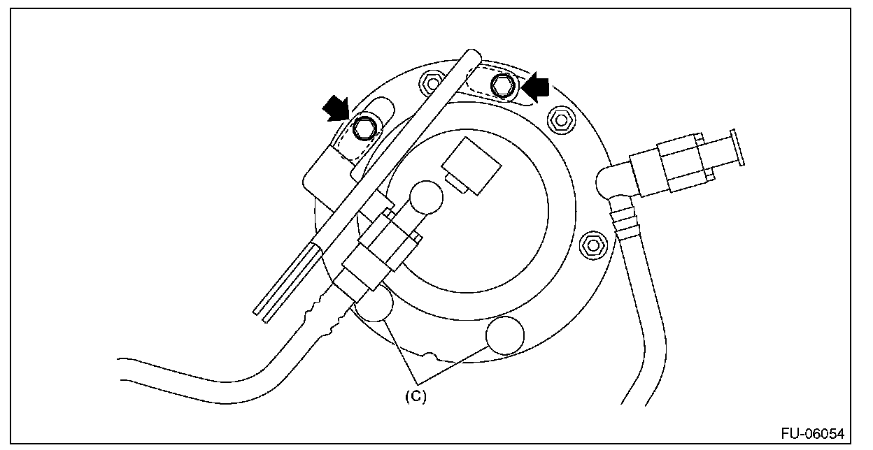 - After tightening, install the rubber cap (C) at the position shown in the figure.