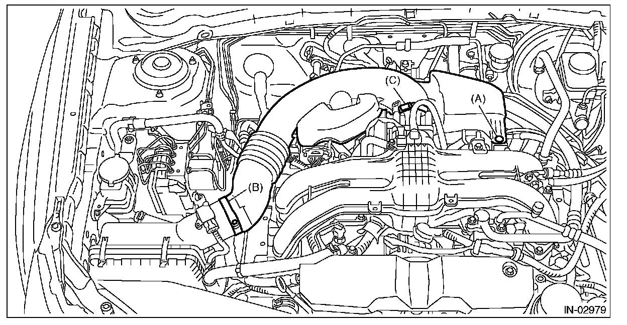 4. Loosen the clamp (C) which connects the air intake boot and throttle body.