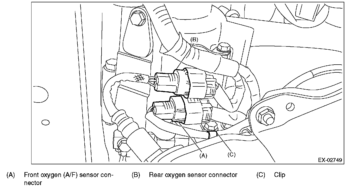 CAUTION: When removing the front oxygen (A/F) sensor, wait until exhaust pipe cools, otherwise it will damage the exhaust pipe.