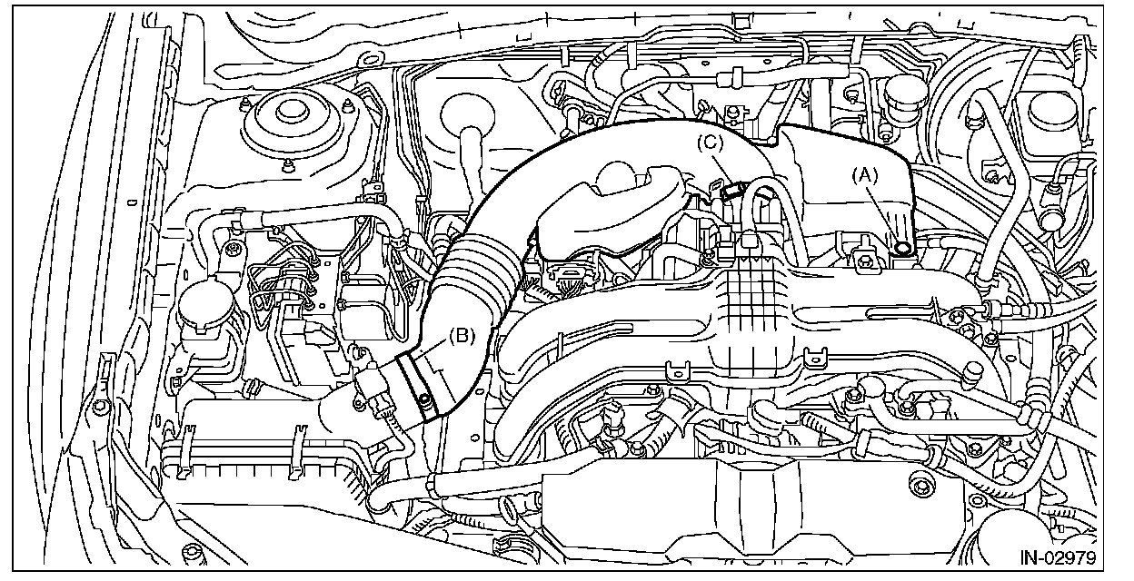 6. Loosen the clamp (C) which connects the air intake boot and throttle body.