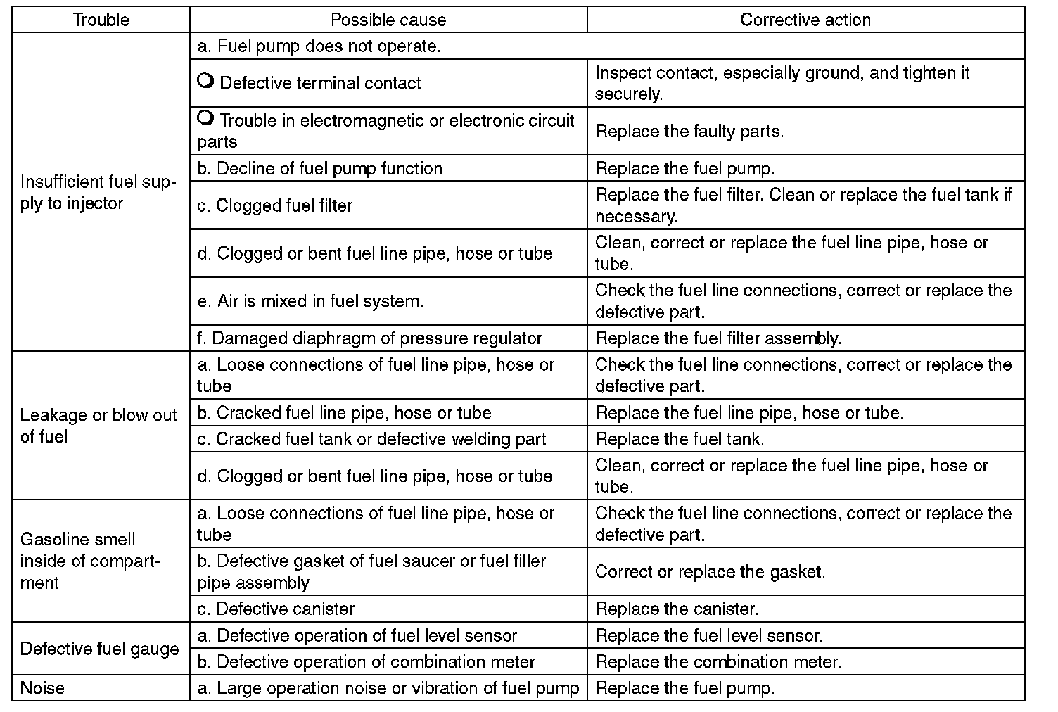 FUEL SYSTEM TROUBLE IN GENERALINSPECTION