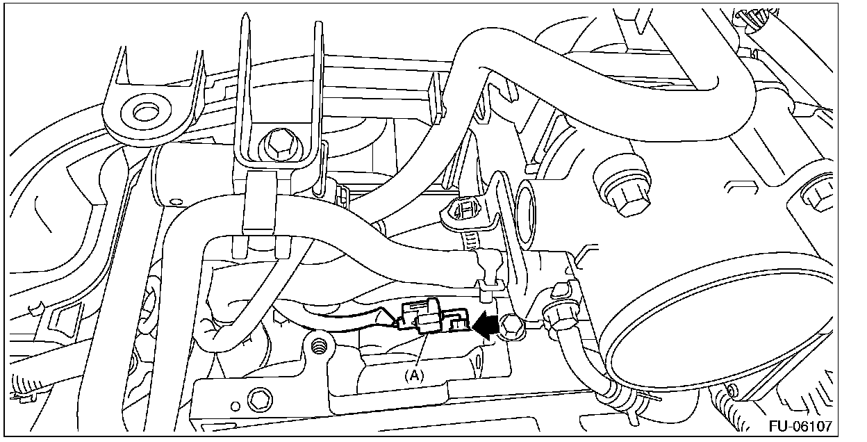 6. Disconnect the connector (A) from the crankshaft position sensor, and remove the crankshaft position sensor from the cylinder block.