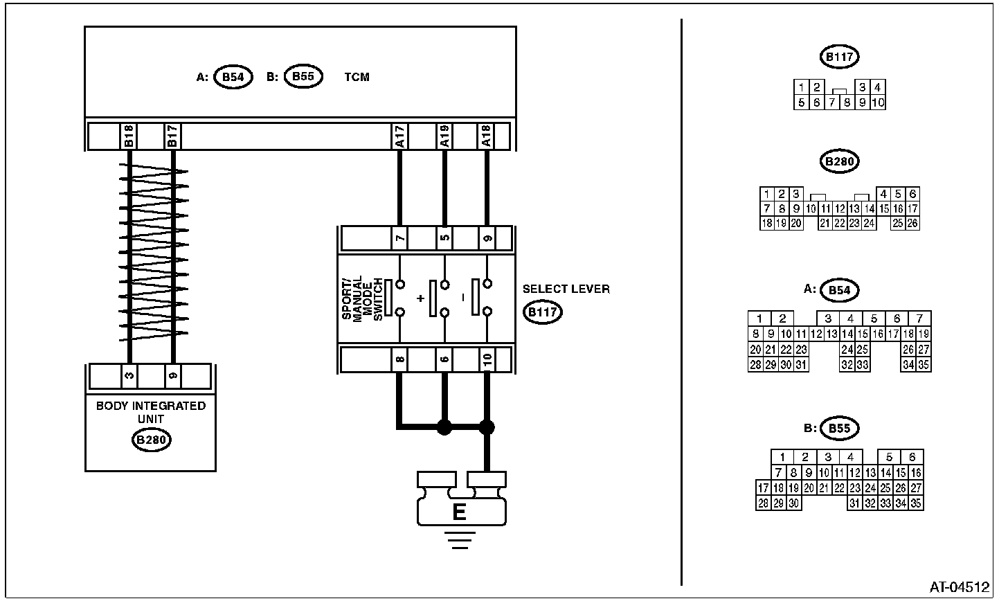 Input signal circuit of sport/manual mode switch is open or shorted.