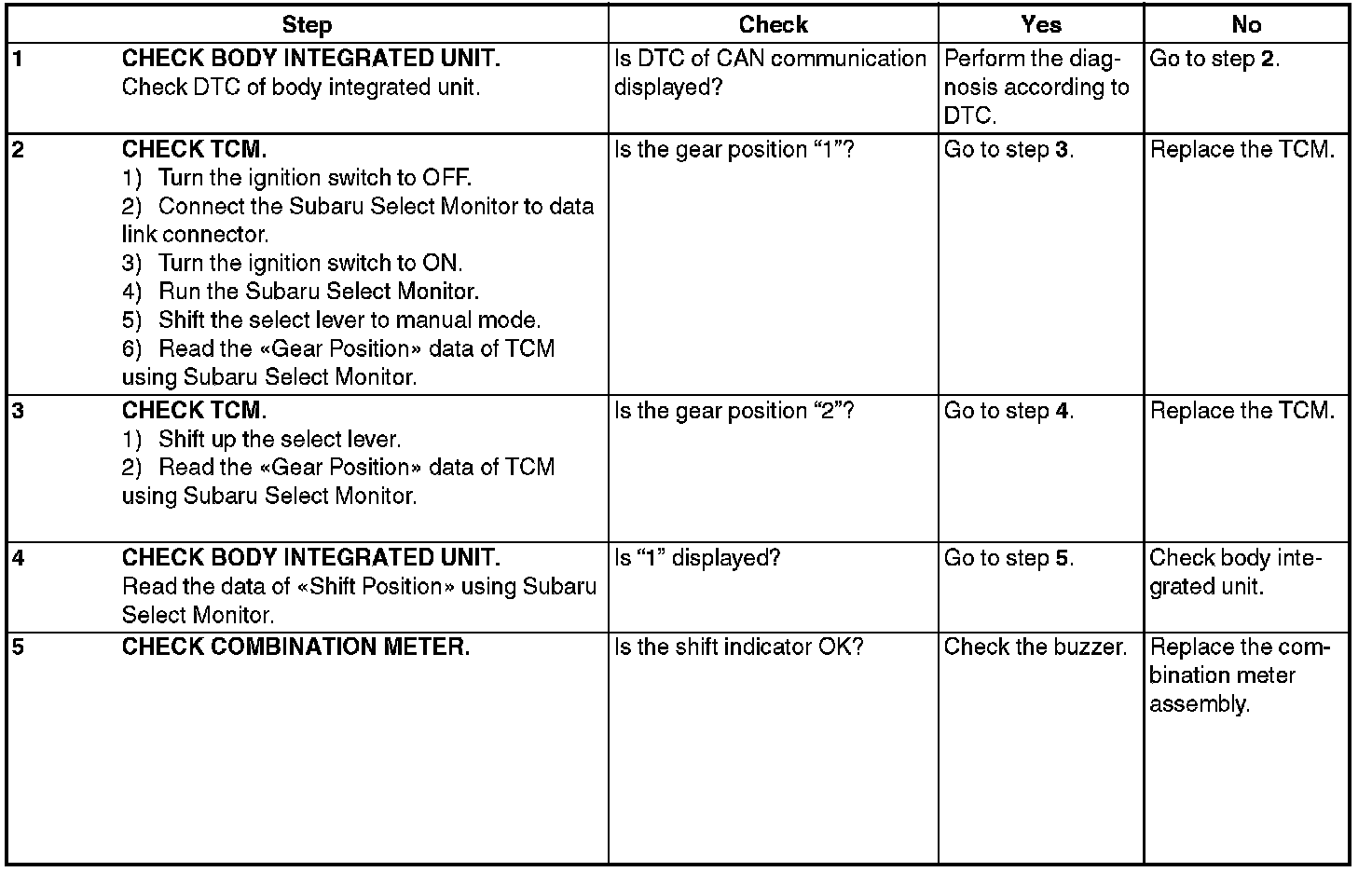 CHECK SHIFT INDICATOR