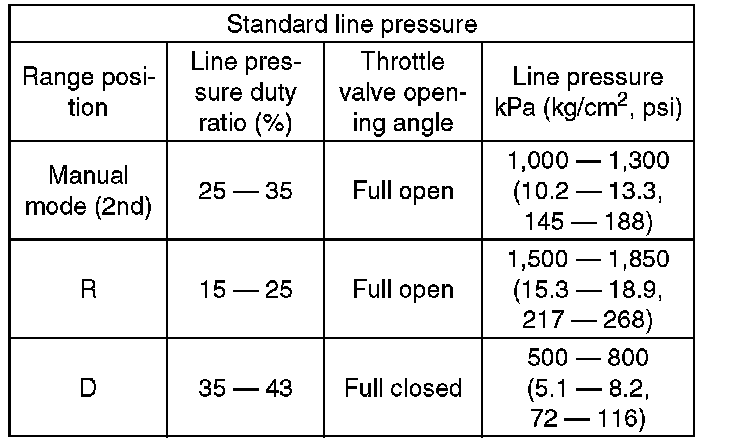 (2) Measure the line pressure when the select lever is in "R" or 2nd gear of manual mode with engine under stall conditions.