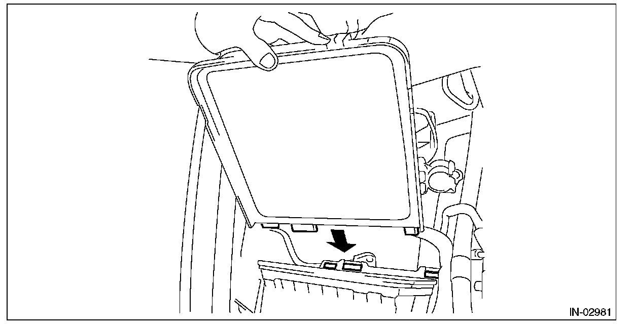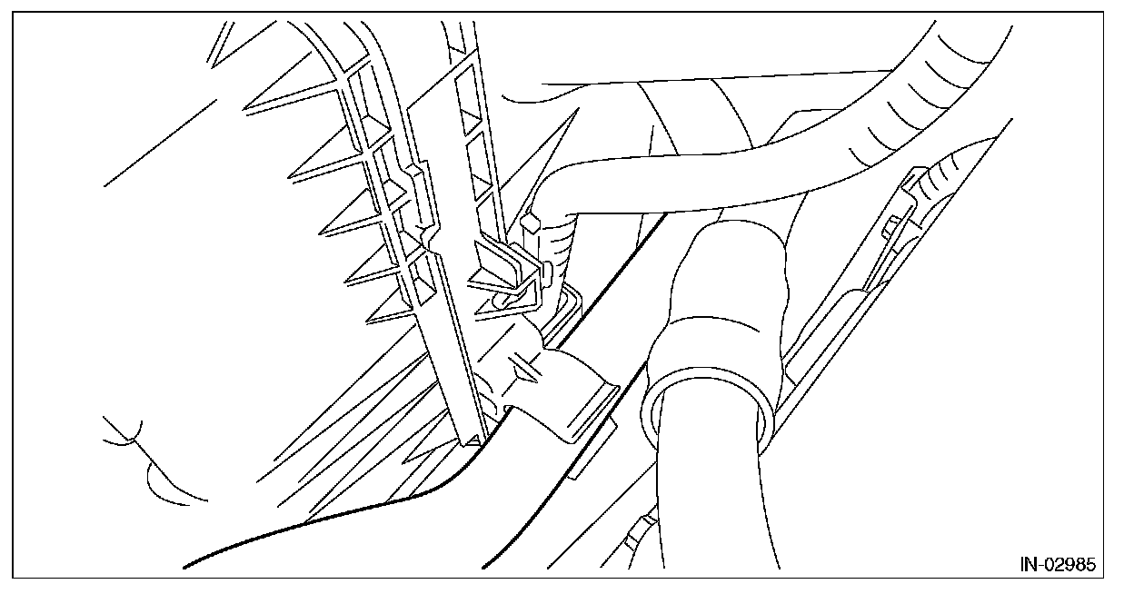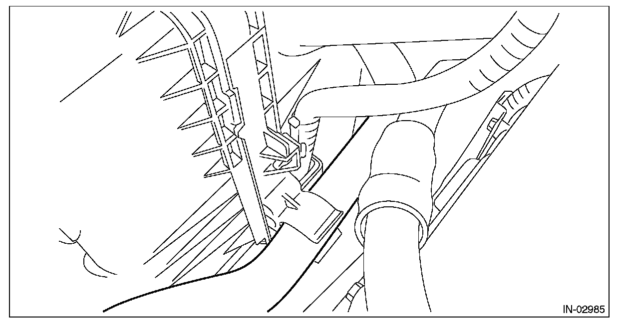 5. Connect the power steering oil pressure hose (suction hose) to the clip on the side of air cleaner case (rear).