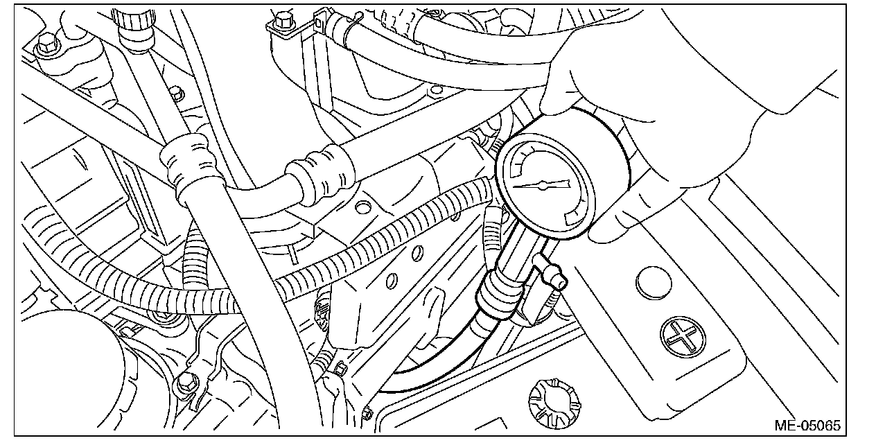 13) Crank the engine by starter motor and read the value when the needle of the compression gauge becomes stable.