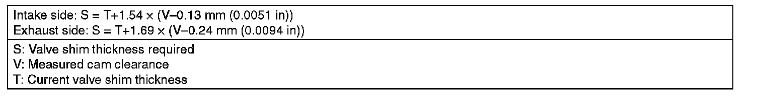 (4) Select a valve shim of suitable thickness using the measured cam clearance and valve shim thickness.