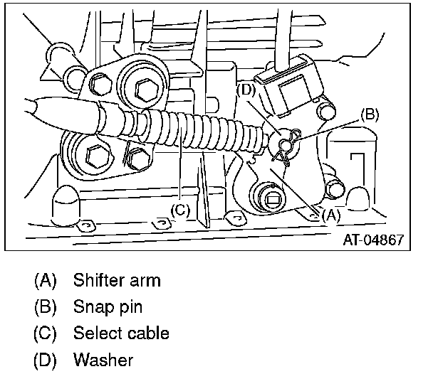 7) Remove the snap pin and washer from the shifter arm.