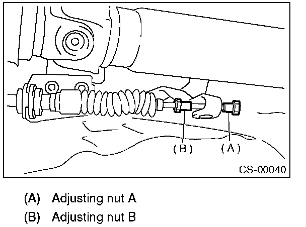 9) Set a spanner wrench to adjusting nut B so that it does not rotate, and then tighten the adjusting nut A.