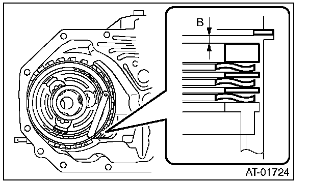 (1) Measure clearance "B" between the retaining plate and snap ring.