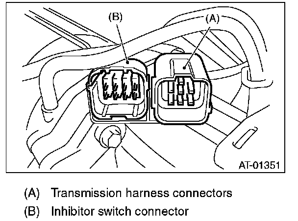 4) Lift up the lever on the rear side of transmission harness connector, and then disconnect it from the stay.