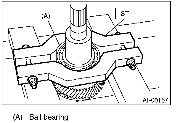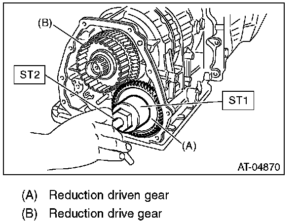 2) Remove the ball bearing from reduction driven gear using ST.