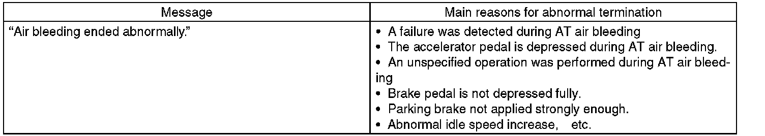 - If the message "Air bleeding ended abnormally." is displayed, start the "AT air bleeding" over from the beginning.