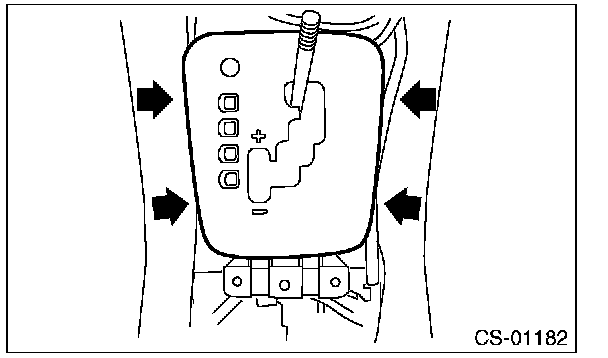 7) While pressing the shift lock release button, shift the select lever to the "N" range.