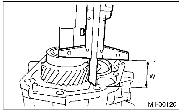 5) Measure the height "W" between transfer case and taper roller bearing on the transfer driven gear.